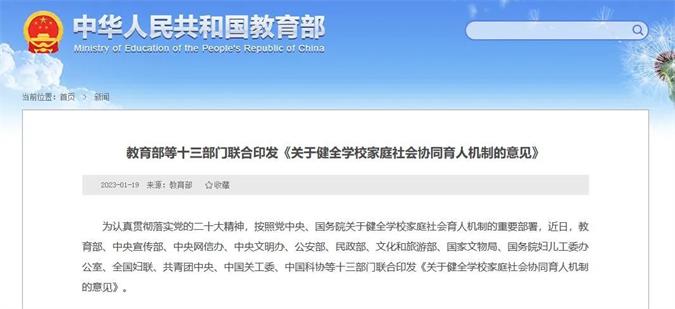 据教育部1月19日消息,教育部等十三部门联合印发《关于健全学校家庭社会协同育人机制的意见》,提出到2035年,形成定位清晰、机制健全、联动紧密、科学高效的学校家庭社会协同育人机制。